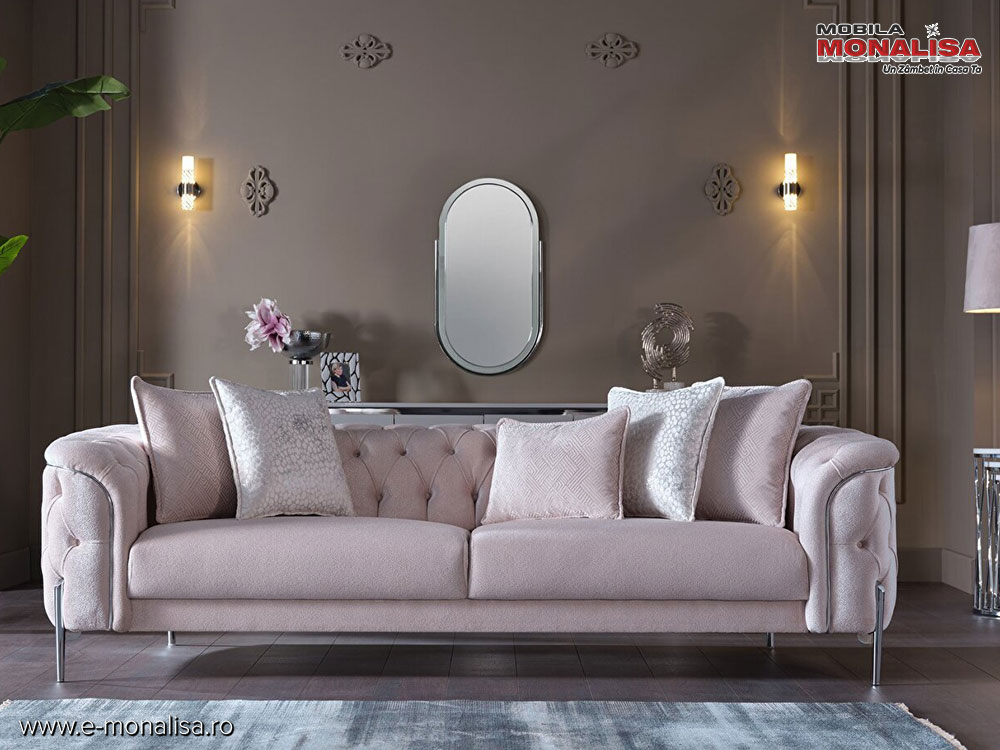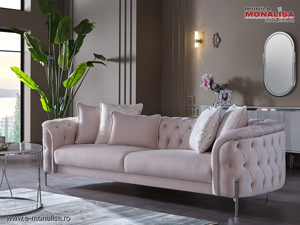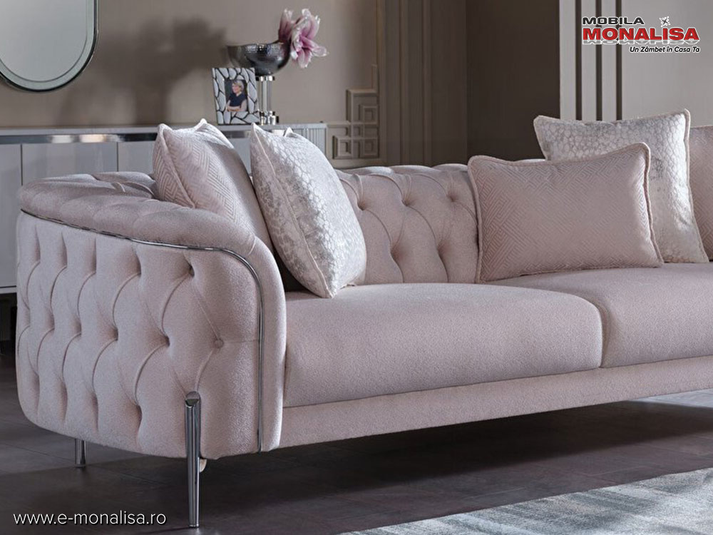 Mobila MONALISA | Canapea Catifea Crem Chester Modern de LUX Dolce 3 Locuri Pret Direct