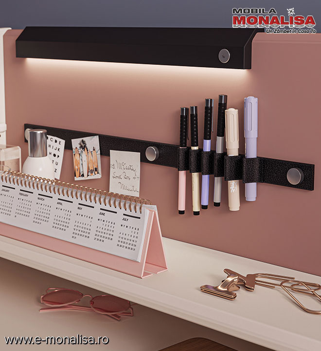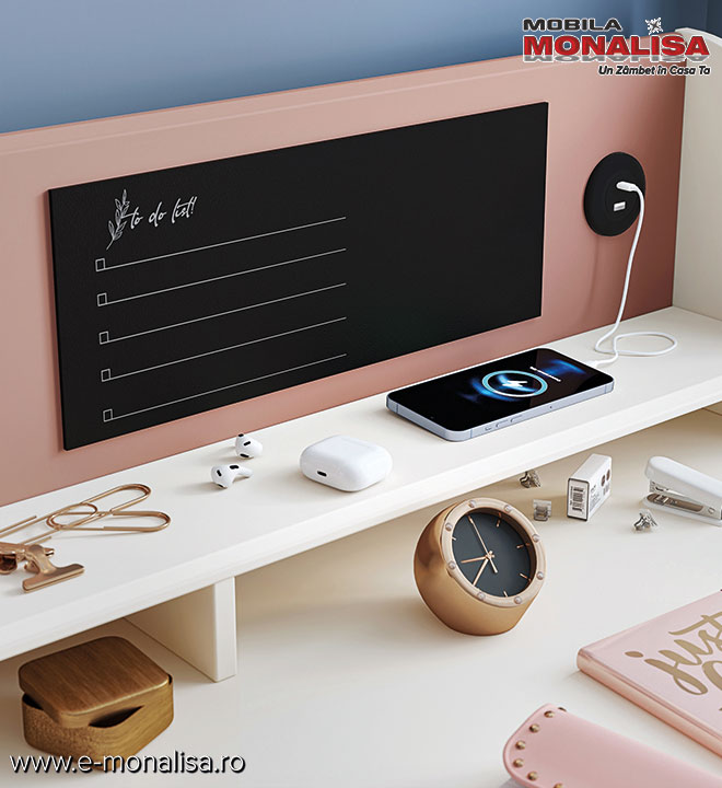 - Minibiblioteca joasa / Raft pt. Birou dormitor copii roz pudra Elegance – 20.84.1102.00 – polita mare + organizator + tabla + lumina LED + incarcare USB – v1