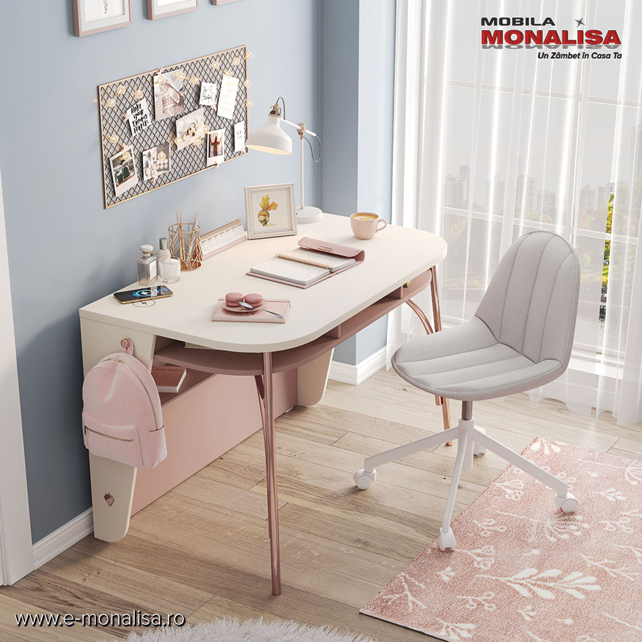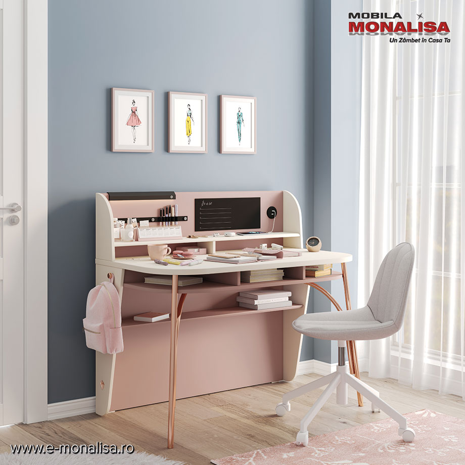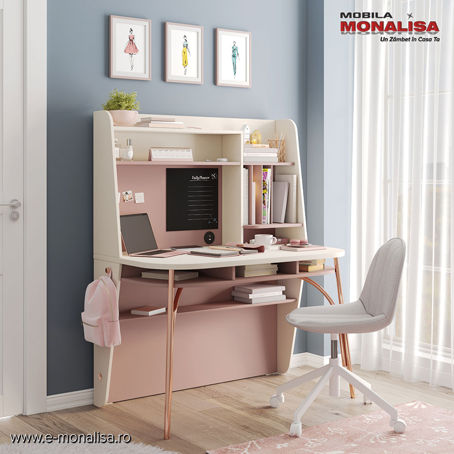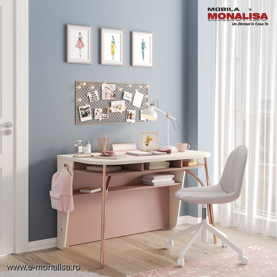 - Birou pt. camera tineret roz pudra Elegance – 20.84.1101.00 – picioare metalice + polite mari dedesubt – v2
