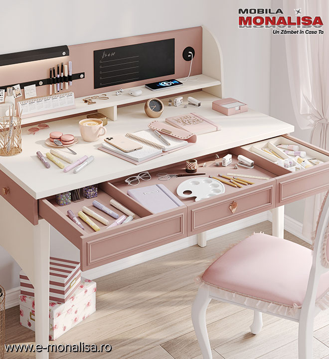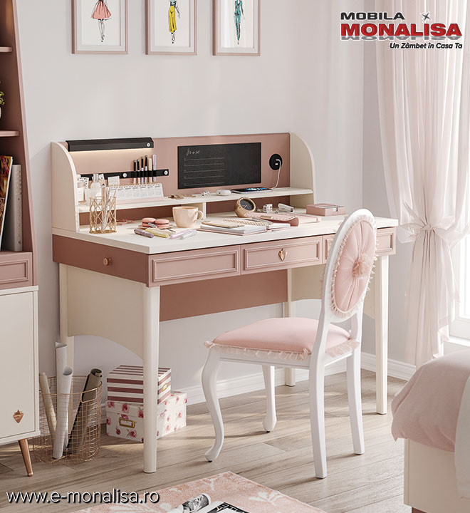 - Birou pt. dormitor copii roz pudra Elegance – 20.84.1101.00 – sertar mare – v1