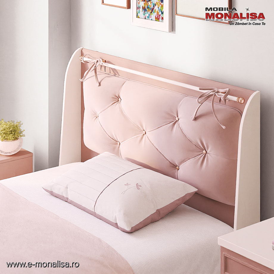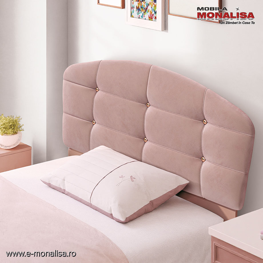 - Pat fix pt. saltea 100x200 cm cu somiera inclusa – 20.84.1319.00 – tablia rotunjita roz pudrat tapitata cu nasturi – v2