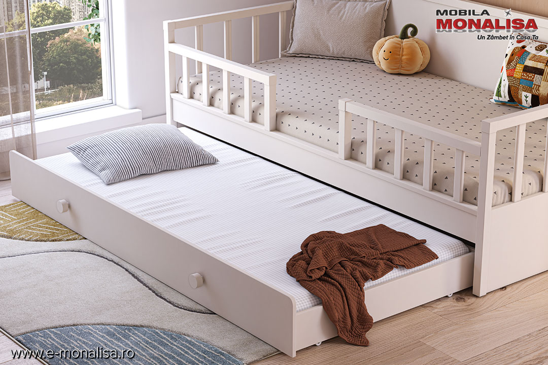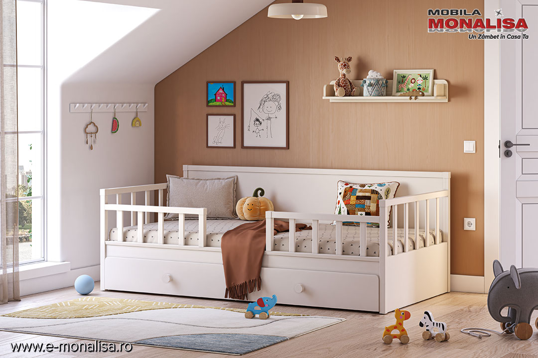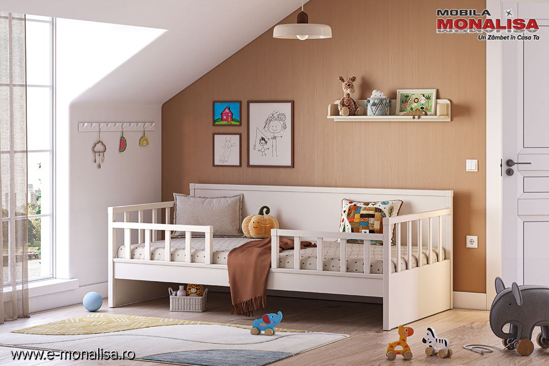 - Pat de zi DAYBED pt. saltea 100x200 cm cu somiera inclusa – 20.84.1310.00 – panouri protectie laterale + fata incluse in pret