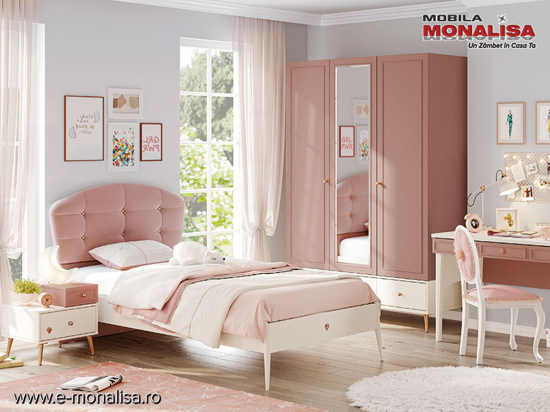 Mobila MONALISA | Set Mobila Dormitor Fete Roz Pudra Elegance de Lux Pret Import