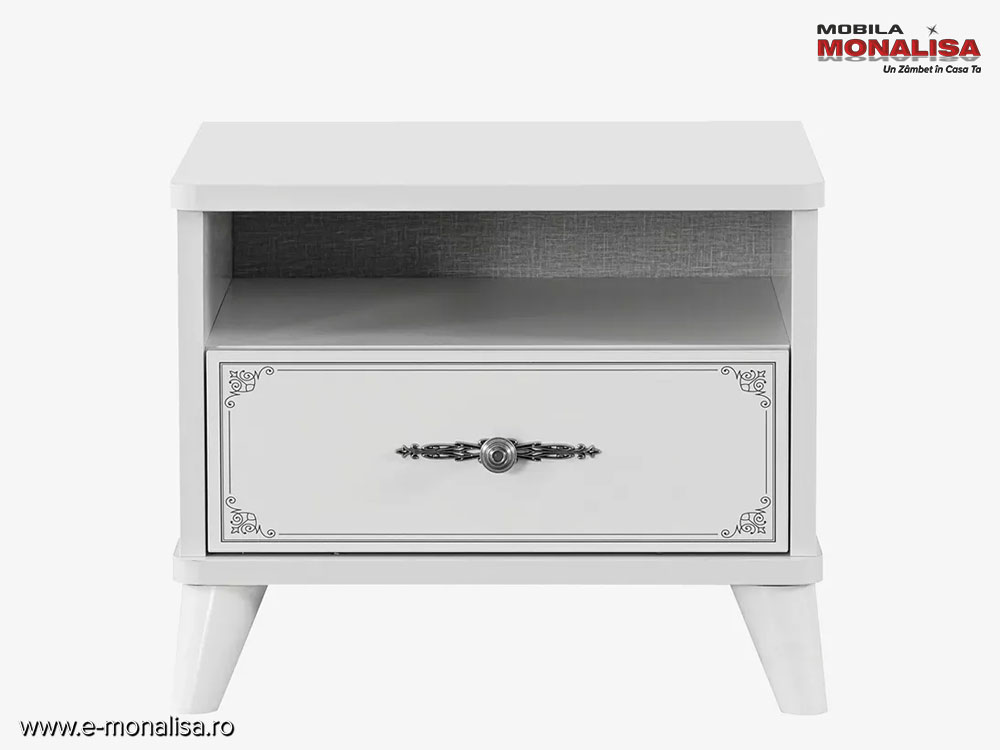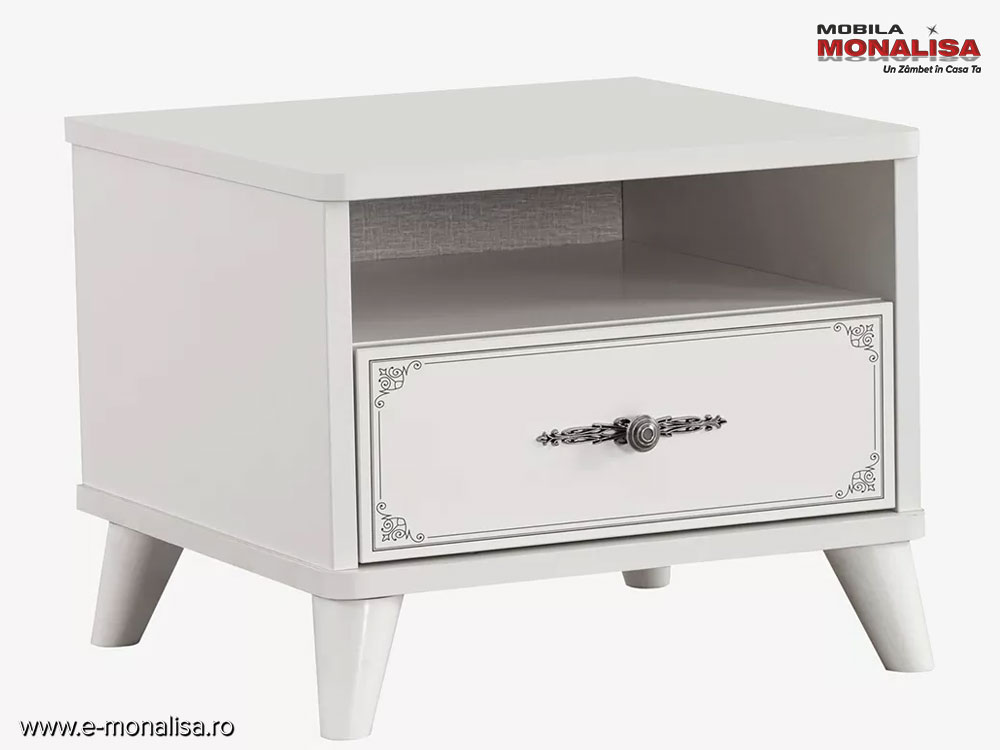 Mobila MONALISA | Noptieră Alb Gri Perla pentru Copii & Tineret ☑️ Design & Calitate