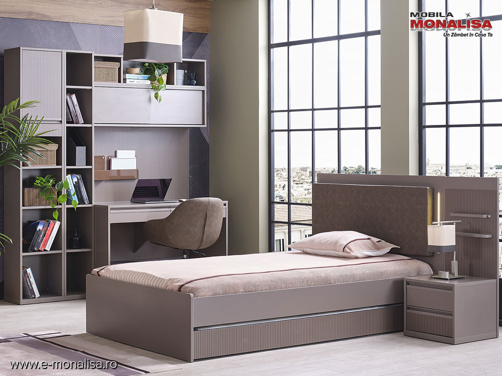 Colecția de paturi moderne pentru tineret Shadow redefinește conceptul de amenajare smart pt. camera adolescentului. Shadow este un pat pentru tineri pretențioși, este o piesa de mobilier care îmbină perfect estetica brută a stilului industrial gri-antracit și grej cu funcționalitatea digitală. Tăblia tapițată a patului nu este doar un element de design, ci un centru gadget: ai port USB integrat pentru încărcarea telefonului și lampă LED Smart Touch pentru lectură. Fiind importator oficial KUPA în România, e-Monalisa vă asigură acces direct la stoc și prețuri de import competitive.