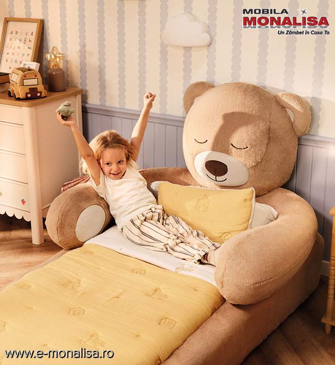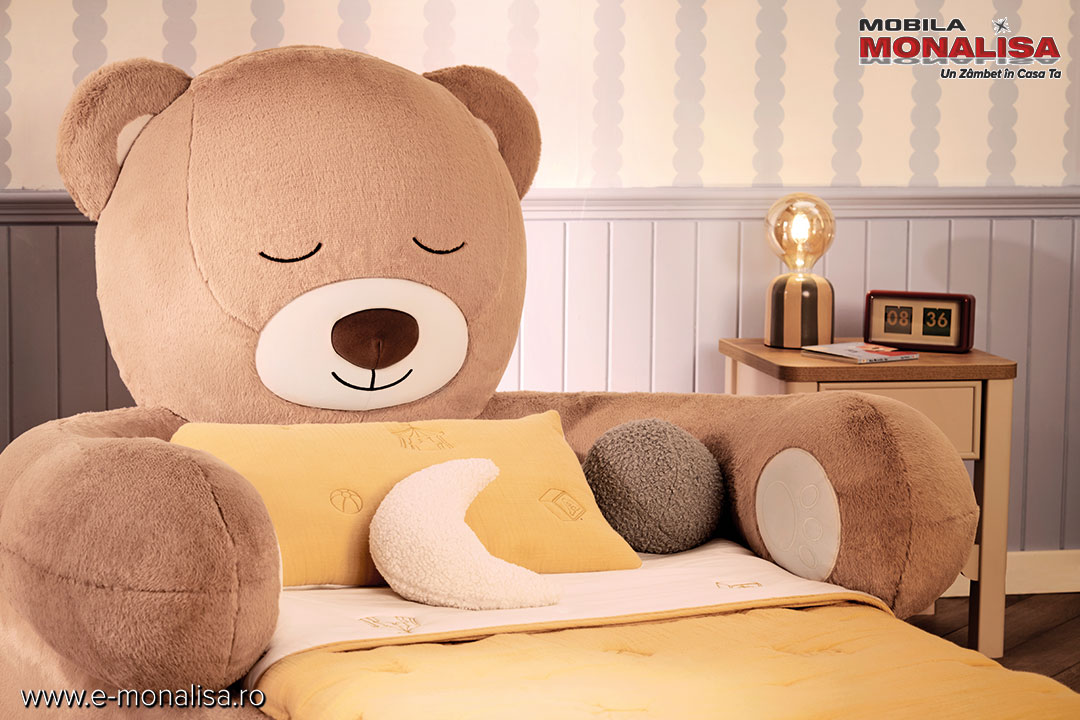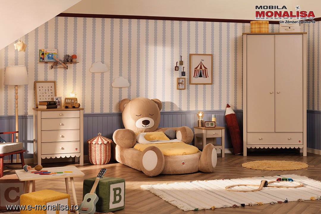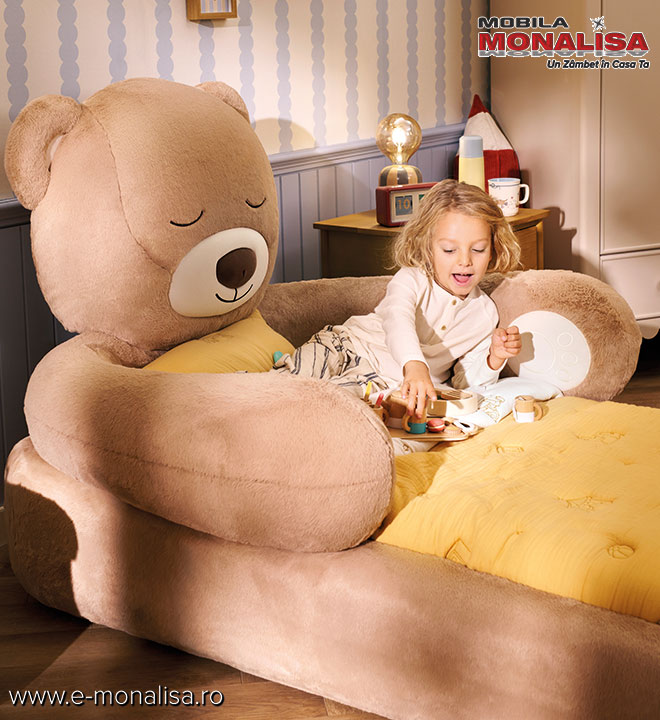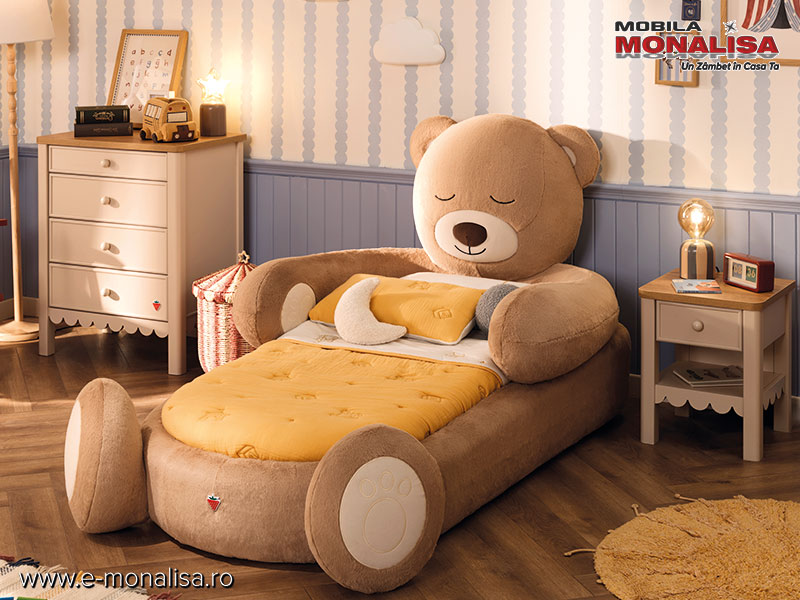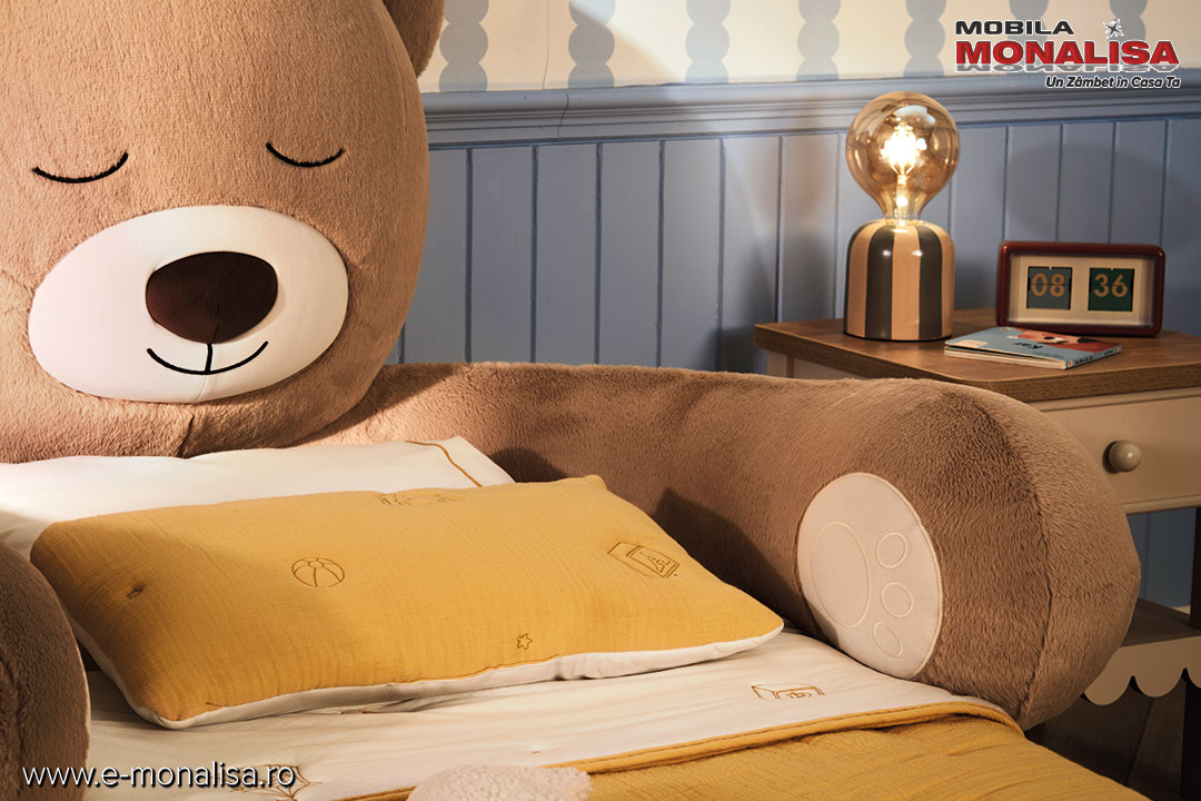 Cu curbele sale line si prezenta fermecatoare, patul Teddy transforma atmosfera camerei intr-o poveste frumoasa a copilariei.