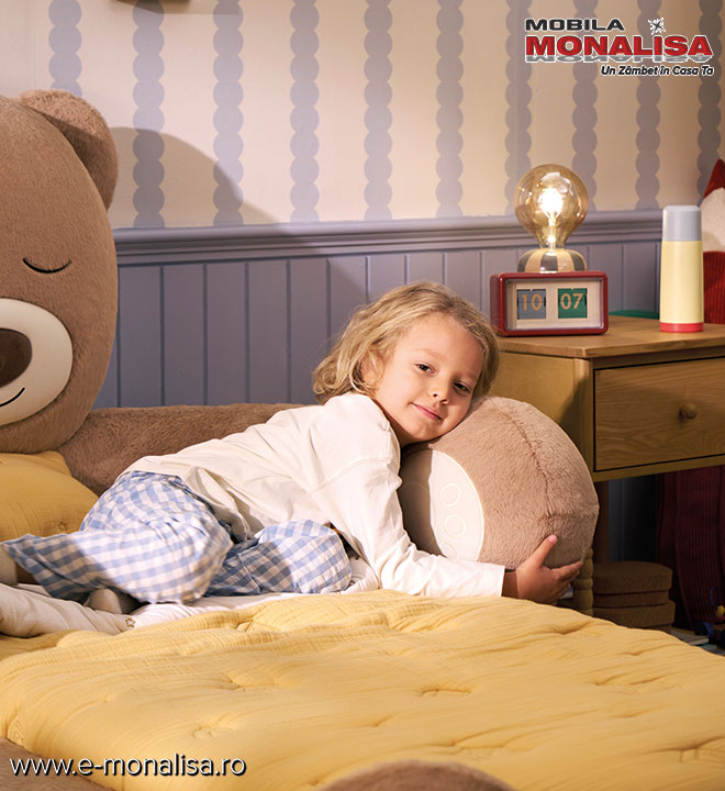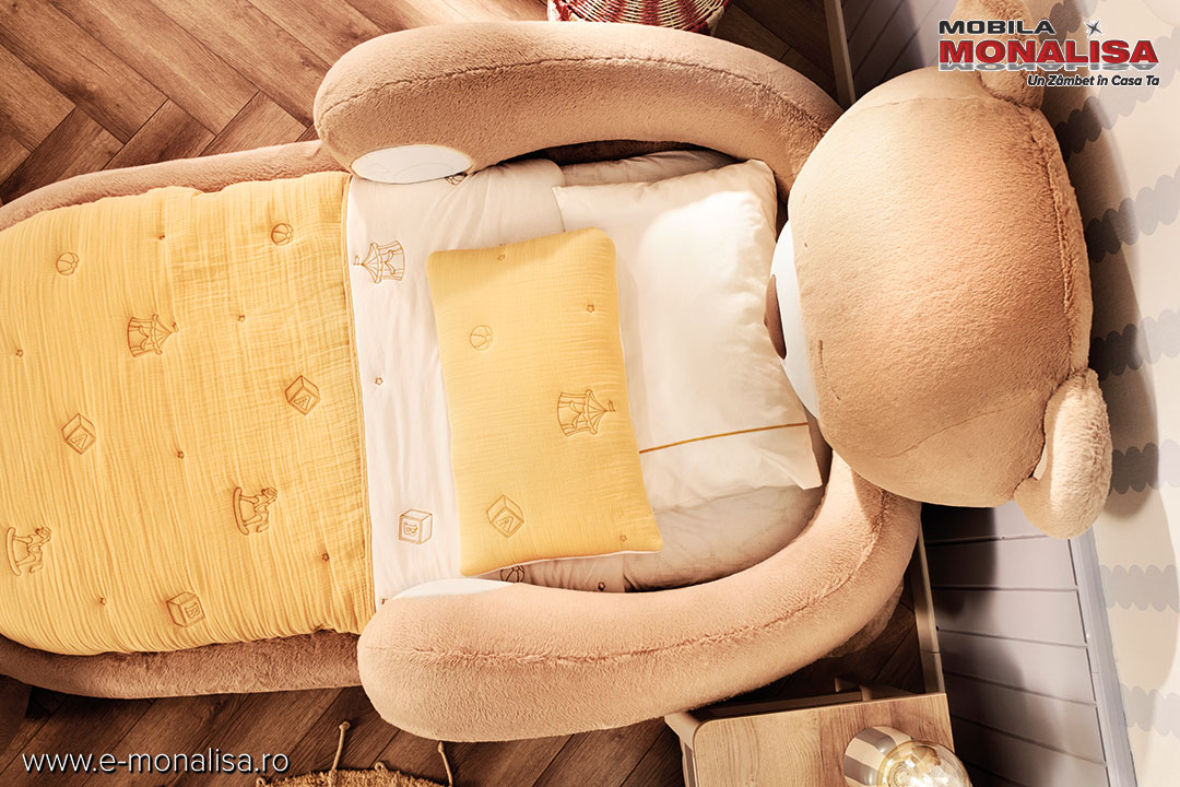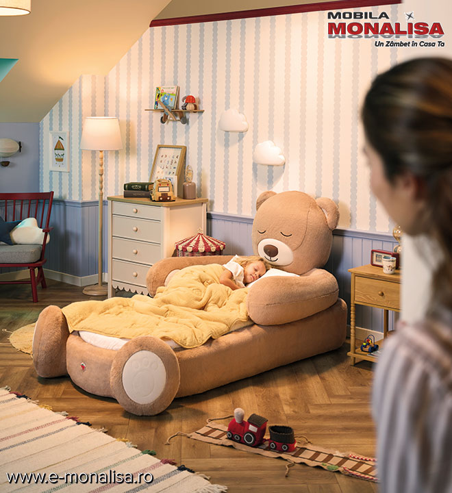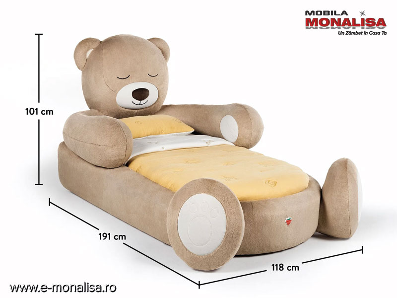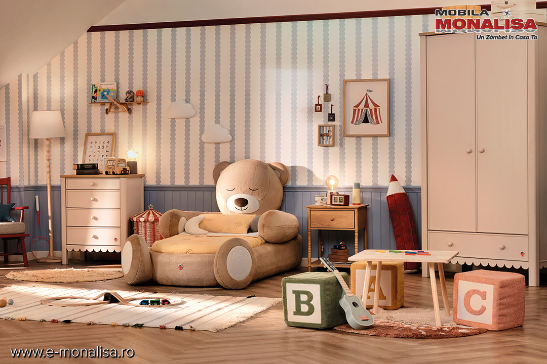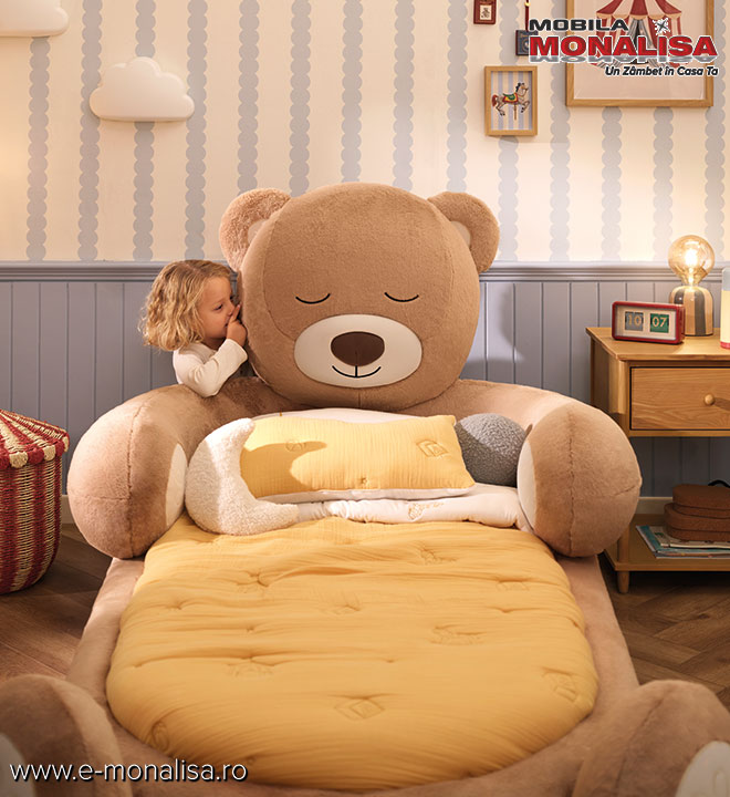 Cu curbele sale line si prezenta fermecatoare, patul Teddy transforma atmosfera camerei intr-o poveste frumoasa a copilariei.