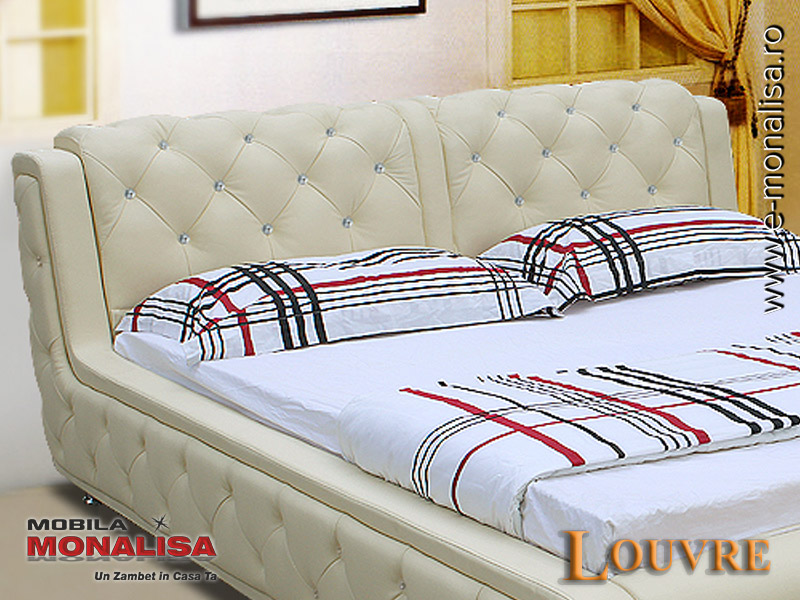 Mobila MONALISA | Pat dormitor piele Crem Louvre | Paturi Dormitor din piele naturala