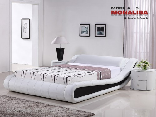 Mobila MONALISA | Pat Tapitat cu Piele Naturala Alb | Pret Paturi Capitonate Albe